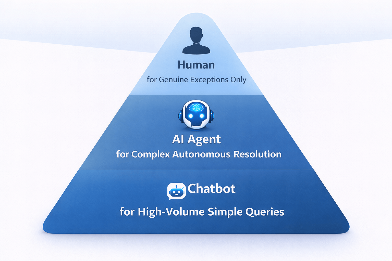 Many enterprise teams deploy chatbot agents in a layered model. The chatbot handles tier-one volume. The AI agent takes over for complex resolution that requires system access and judgement. A human steps in only for genuine exceptions. This architecture maximises cost efficiency while delivering high-quality outcomes at every tier.