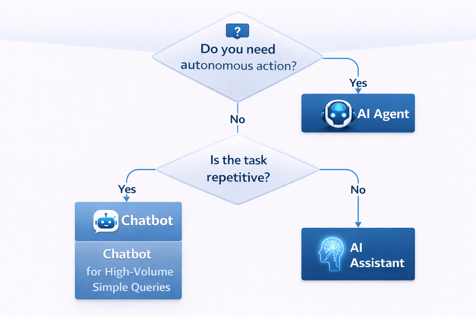- What business outcome are you targeting? Cost deflection points to a chatbot. Revenue growth and end-to-end operational efficiency point to an AI agent.